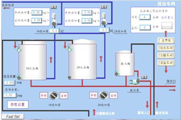 次氯酸鈉發(fā)生器通過PLC控制,采用我司具有自主知識產(chǎn)權(quán)的次氯酸鈉發(fā)生器控制軟件,可以實現(xiàn)自動溶鹽、自動補水、主機按照要求自動開停、自動定期酸洗、自動實現(xiàn)余氯反饋保障出廠水水質(zhì)的全自動化控制功能,完全實現(xiàn)無人操作。