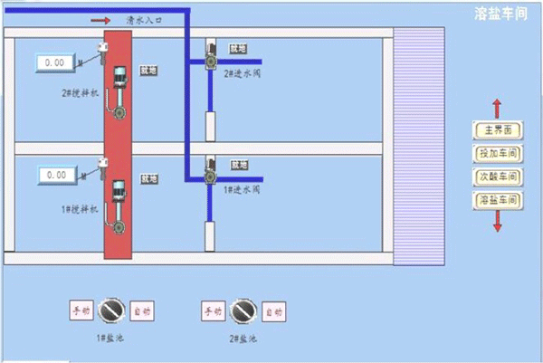 ● 儲鹽溶鹽池設(shè)計方式,溶鹽池通過超聲波液位計自動補充軟水,保證長期不間斷供應(yīng)飽和鹽水。